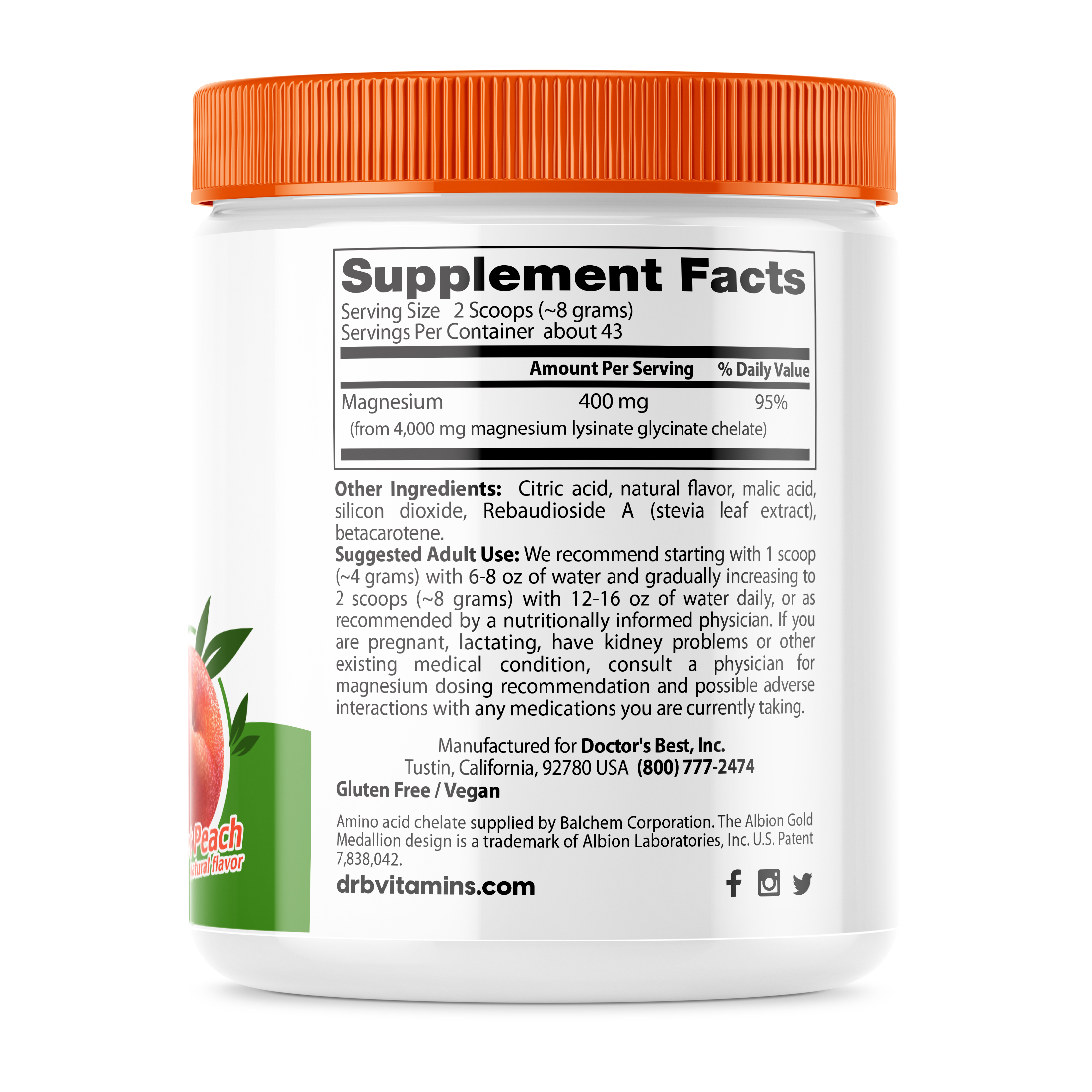 Doctor S Best Magnesium Powder High Absorption 100 Chelated Peach Flavor 12 3 Oz Walmart Com